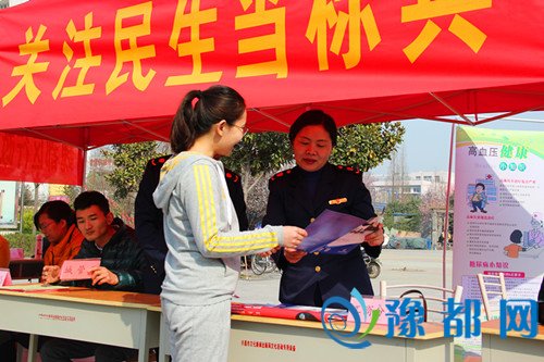 “以百姓之心为心,换位思考,为民解忧、为民解难,将身躯沉入群众,将感情融入群众”,为进一步增强机关党员干部的为民服务意识,加大服务力度,3月21日上午,魏都区行政服务中心组织涉及民生的卫生、计生、民政、食药监等10个窗口工作人员深入光明社区,在许继广场开展了以“关注民生当标兵,服务百姓零距离”为主题的送服务活动。通过悬挂横幅,设立便民服务台,发放便民服务卡等形式,向社区居民宣传党的方针、政策,针对居民比较关心的社保、医保、低保等问题为群众进行现场讲解,并邀请社区卫生人员现场为社区群众免费测量血压,讲解急救和日常保健常识。共为社区群众解答咨询200余人次,免费测量血压150余人,贴心周到的服务得到广大居民的交口称赞。