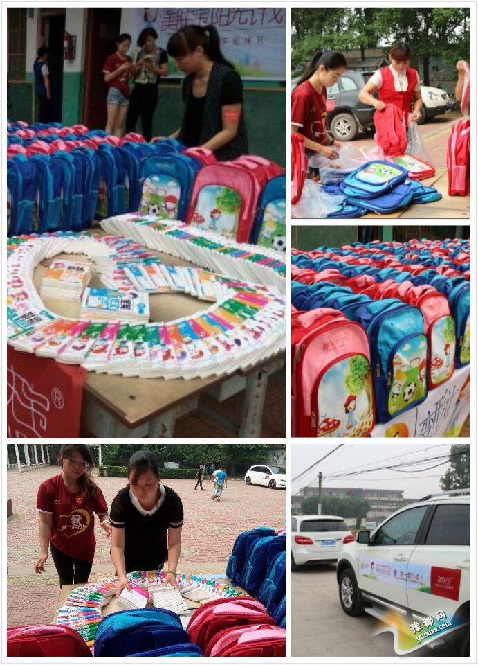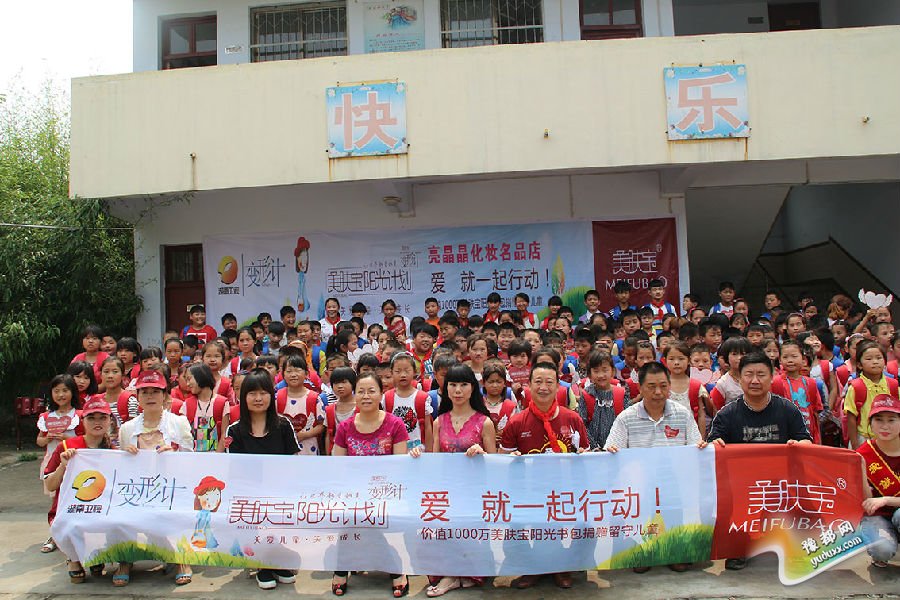2015年,美肤宝投入一千万元设立“阳光计划公益基金”,续力美肤宝阳光计划公益活动。6月17日,郑州水之韵商贸有限公司携手襄城县亮晶晶化妆品店及美肤宝爱心志愿者,走进库庄镇李吾庄中心小学,为学生们送去爱心助学物资。襄城县妇联副主席赵丽亚、郝晓蓓,环亚美肤宝河南市场主管赵莹,郑州水之韵商贸有限公司主管李冉、梁雯,襄城县亮晶晶化妆品店林召坡、曹晓丽以及众多爱心志愿者共同为李吾庄小学165名小学生送去书包、字典等助学物资,还一起去到特困生张浩龙家里,为他们送去米面油等生活物资。