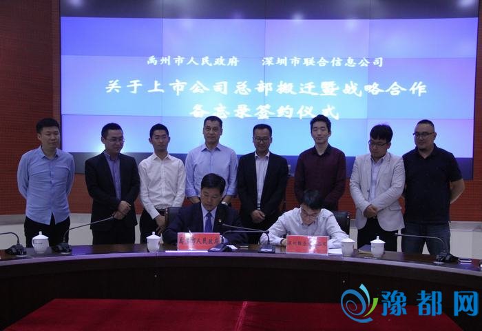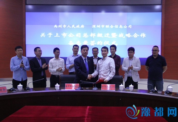 4月18日,禹州市人民政府与深圳市联合信息发展股份有限公司举行关于上市公司总部搬迁暨战略合作座谈会和备忘录签约仪式。